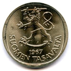Before independence Finland was pat of the Russian Empire. In 1860 Emperor Alexander II gave Finland permission to issue its own currency. First to appear were Markka denominated banknotes. Coins followed the suit in 1864 when Mint of Finland started its operation. The last Markka and Penni coins were issued in 2001, the year before Euro replaced it as Finland’s currency.