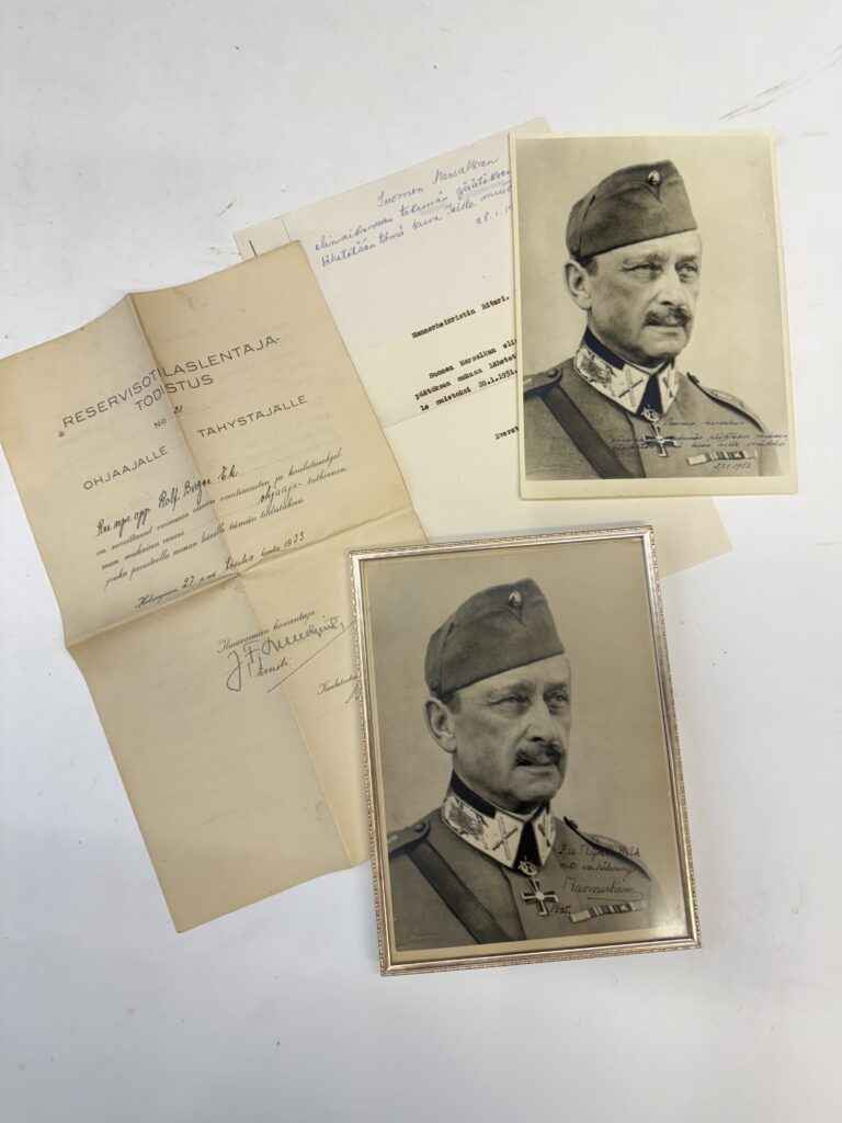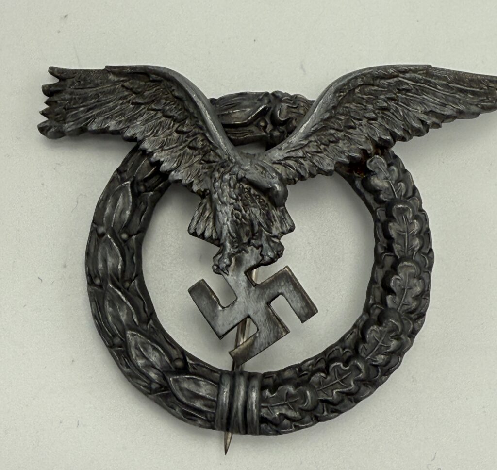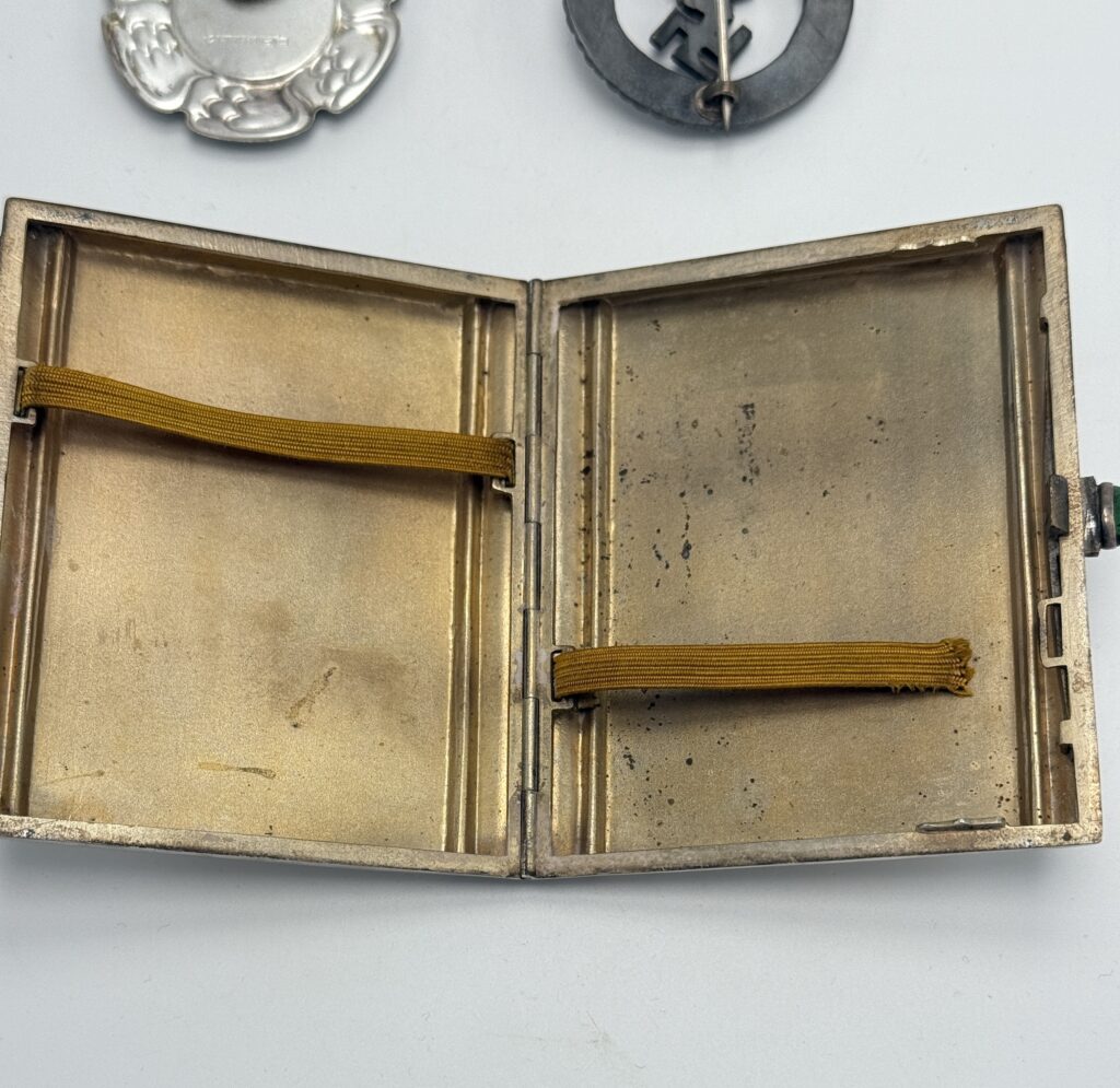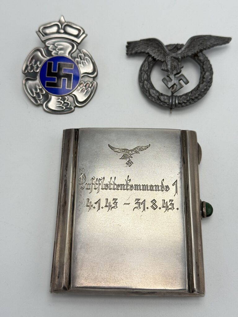 Saksan ohjaaja- ja tähystäjämerkki sekä Luftflottenkommando 1:n lahjoittama hopeinen tupakkarasia
