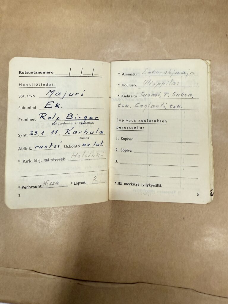Birger Ekin upseerimiekka ja lentäjälakki