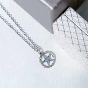 14k valkokullasta valmistettu sydämen muotoinen riipus, jossa 22kpl briljanttihiontaista timanttia.